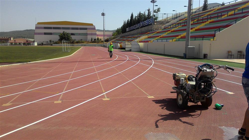 Muğla Sıtkı Koçman Üniversitesi atletizm pisti saha çizgileri, üstün ekipmanlarımız ve uzman ekibimiz ile 16.09.2015 tarihinde sadece 1 gün içerisinde tamamlanmış ve aynı günün akşamı hizmet vermeye başlamıştır.
